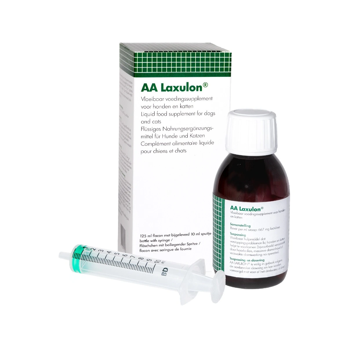 AA Laxulon is a liquid supplementary animal feed that contains lactulose. Lactulose supports the bowel function and helps cats and dogs defecate. It can prevent or help expel hairballs.