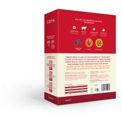 Fresh chicken (16 %), chicken meal (16 %), whole red lentils, whole green peas, turkey meal (6 %), whole chickpeas, fresh chicken giblets (liver, heart) (4 %), herring meal (4 %), eggs (4 %), raw flounder (4%), fish oil (3%), chicken fat (2.5%), whole green lentils, whole yellow peas, pea fibre, pea starch, raw turkey livers (0.5 %), salt, dried kelp, fresh whole pumpkin, fresh whole butternut squash, fresh whole carrots, fresh whole apples, fresh whole pears, fresh whole zucchini, dried chicory root, fresh kale, fresh spinach, fresh turnip greens, fresh beet greens, fresh whole cranberries, fresh whole blueberries, fresh whole saskatoon berries, turmeric, milk thistle, burdock root, lavender, marshmallow root, rosehips.