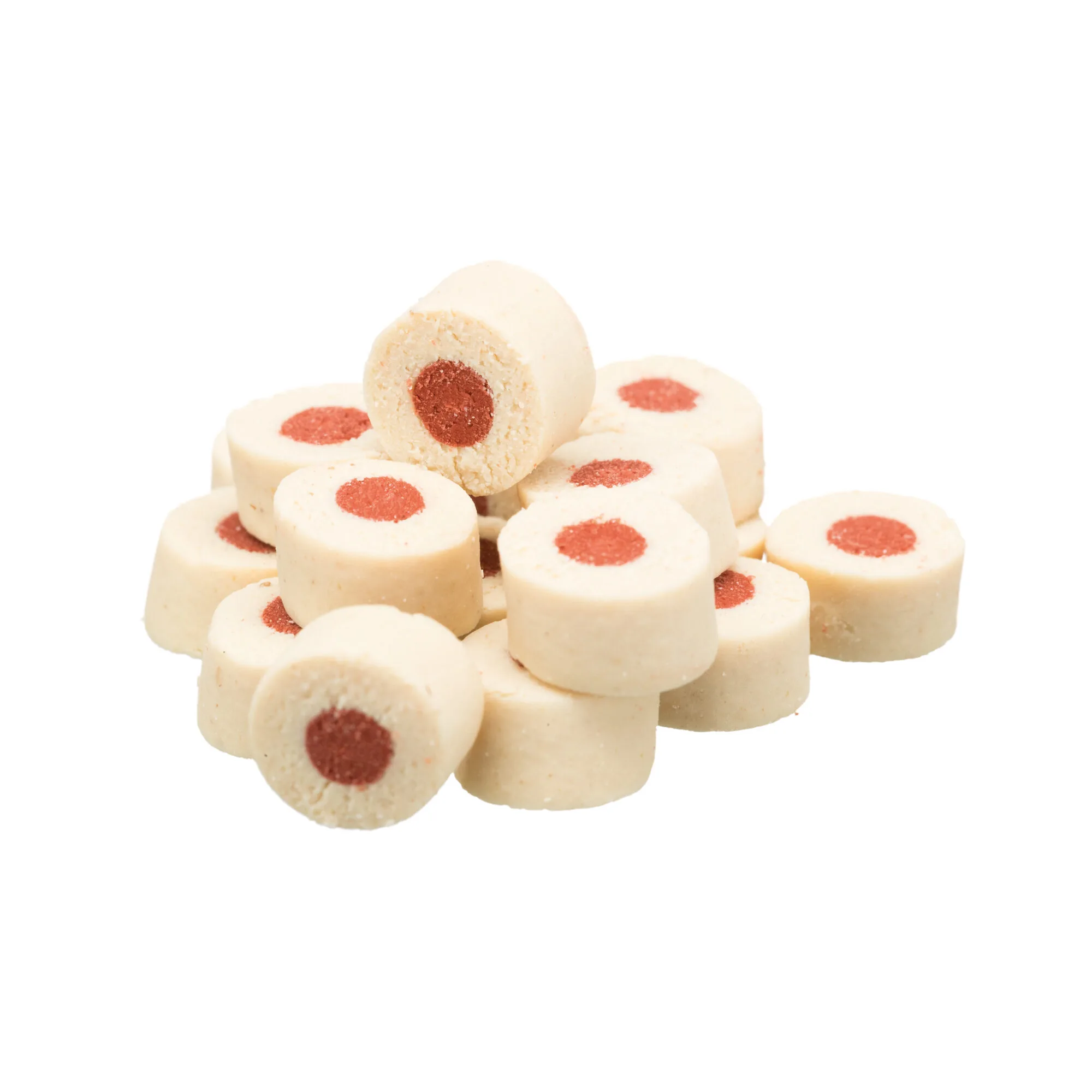 - Salmon Rounds: cereals, vegetable by-products, meat and animal by-products, fish and fish-products (4 % salmon), oils and fats, yeasts, vegetable protein extracts, minerals, propylene glycol.