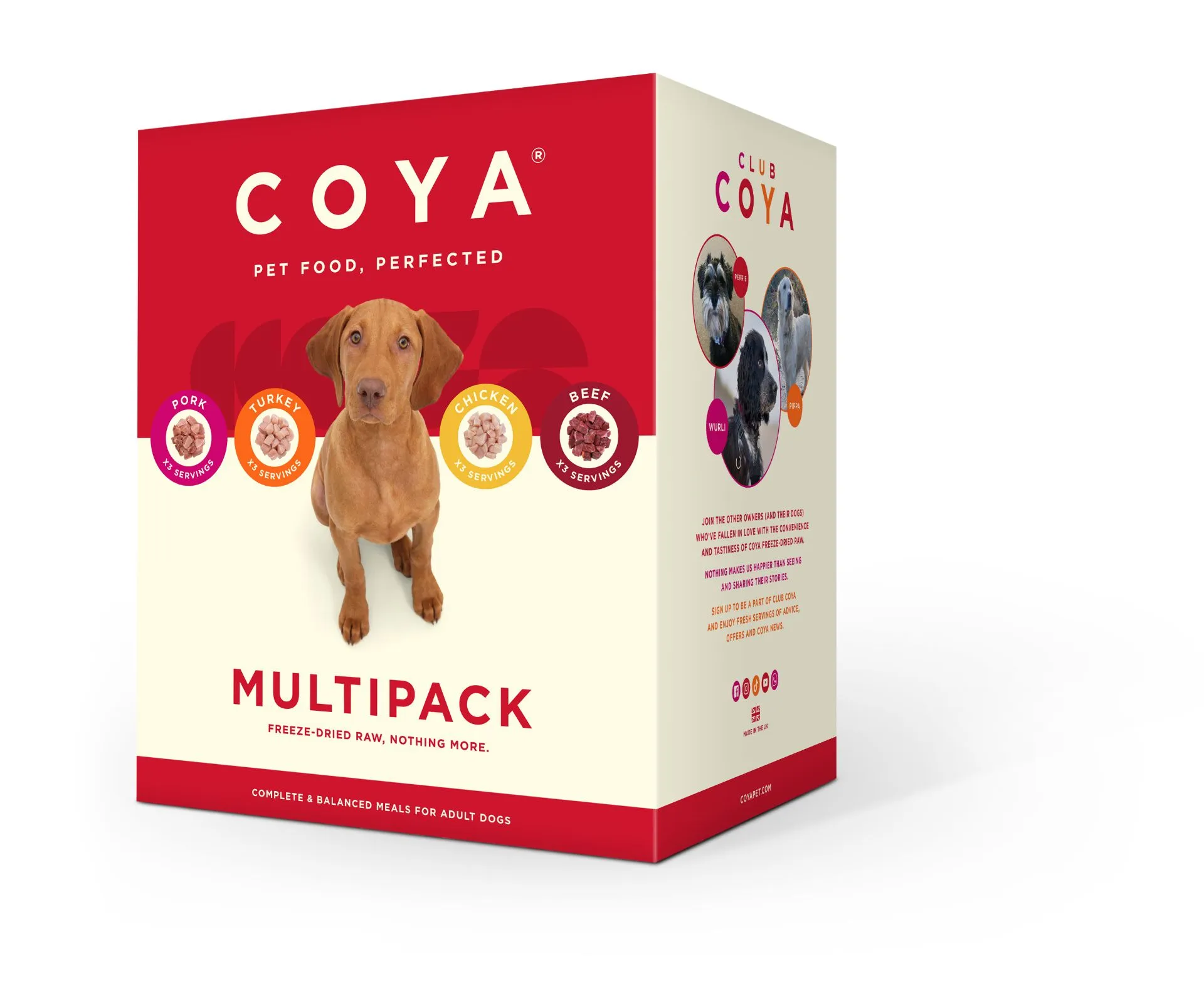 80% chicken, 6% sweet potato, 4.5% carrot, 3% pea, 2% apple, 2% blackberry, vitamins & minerals