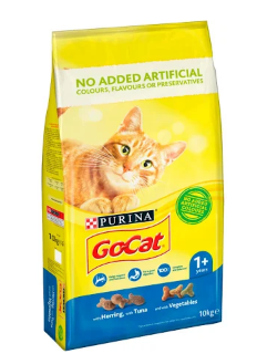 GO-CAT Adult with Tuna, Herring and added Vegetables is 100% complete and balanced, providing him with all the nutrition he needs to keep adding a little sunshine to your life. High quality protein to support muscle tone Essential minerals and vitamin D for healthy teeth and bones Balanced minerals to help maintain urinary tract health Tasty, complete nutrition made by Purina experts