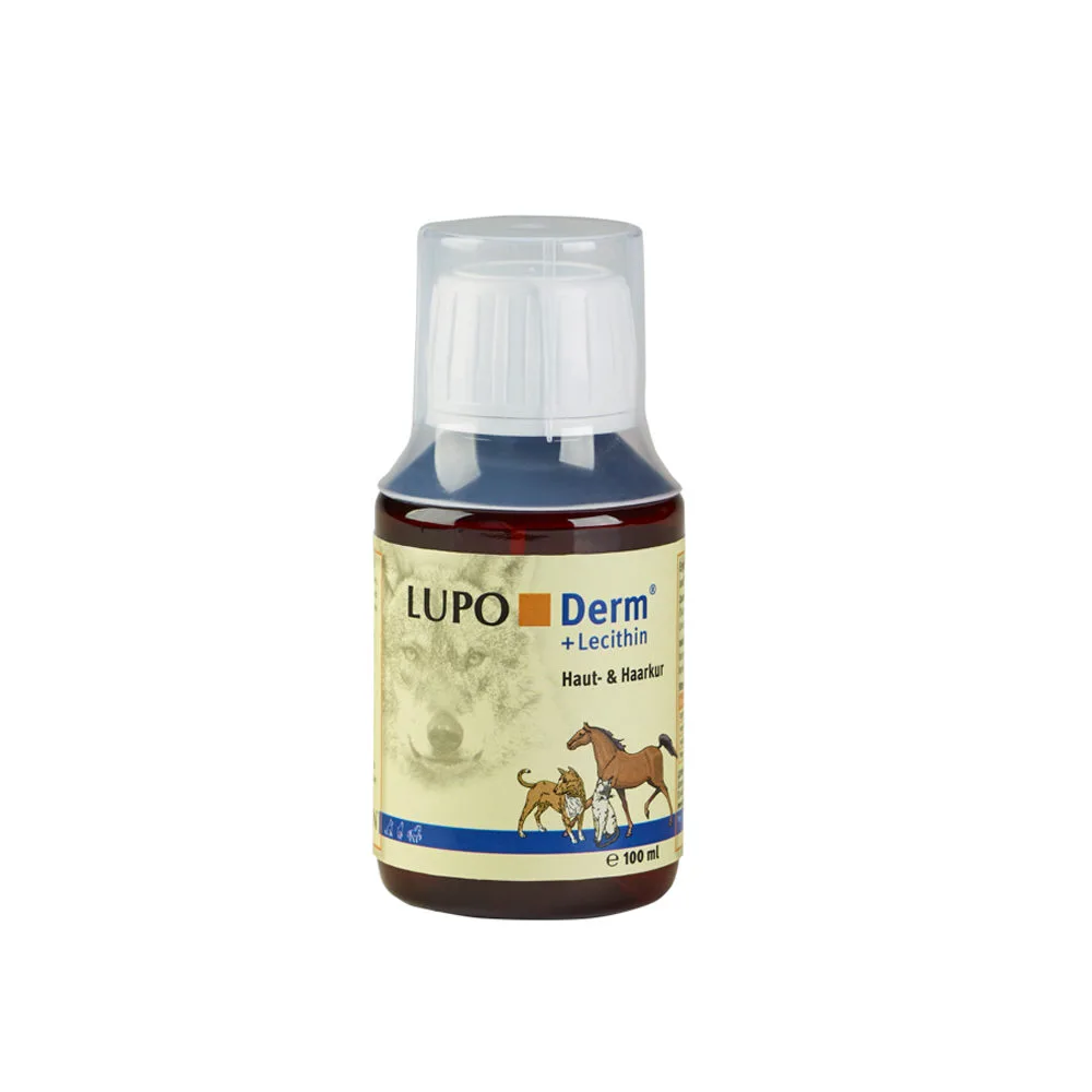This skin and coat treatment contributes to healthy skin and a shiny coat. Lupoderm contains all essential unsaturated fatty acids such as Omega 3, Omega 6 and Lecithin, which help to promote a glossy coat, healthy and elastic skin, better pigment and increased vitality. The drops can be added easily to your pet’s food. After 3 to 4 days, the effect on the skin and coat should be visible.