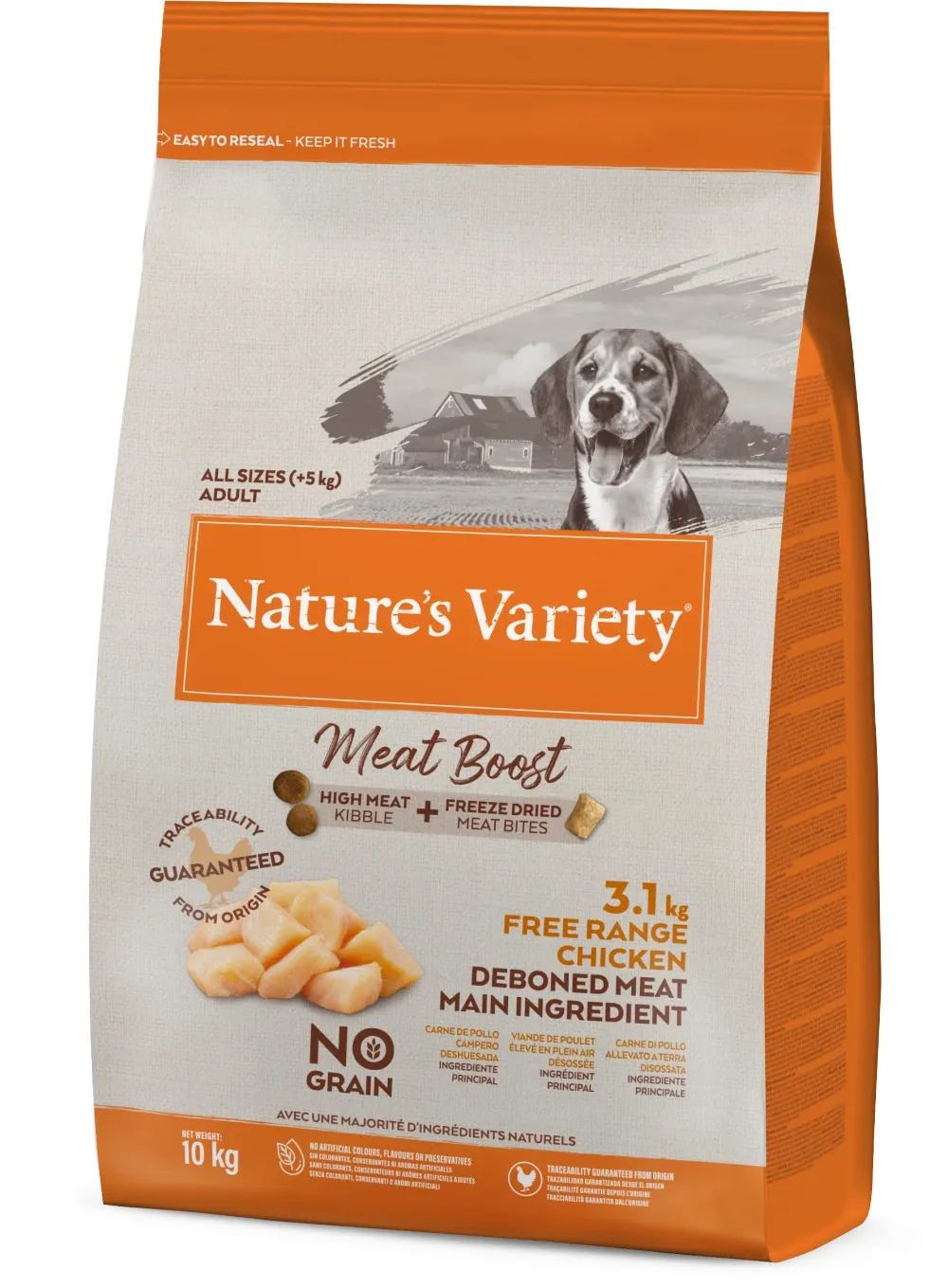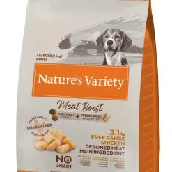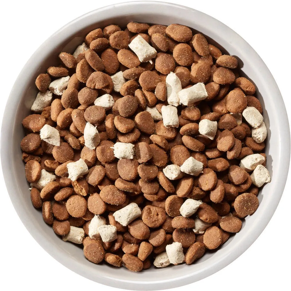 Meat Boost is the pinnacle of dry dog food. We’ve combined nutritious high meat bites (the kibble) with our revolutionary freeze dried pieces of real meat (the boost). It’s a complete and balanced meal for your dog that’s big on taste.