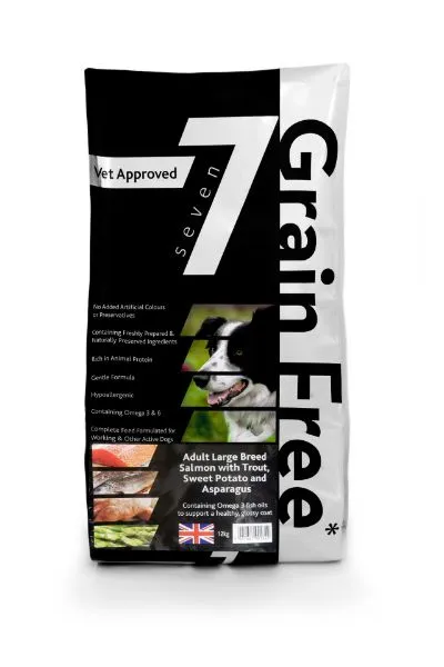 Fish 50% (Including Fresh prepared Salmon and freshly prepared Trout 33%, dehydrated Salmon 15% & Salmon Digest 2%), Vegetables (including Sweet Potato (24%), Peas (9%), Potato, Asparagus (0.3%), Digestive Care Pack (Beet Fibre, Fructooligosaccharides (96 mg/kg), Mannanoligosaccharides (24 mg/kg) Flaxseed, Fish Oil, Vegetable Stock, Vitamins & Minerals, Joint Care Pack (Glucosamine (170mg/kg), Methylsulfonymethane (170mg/kg) Chondroitin Sulphate (125mg/kg)